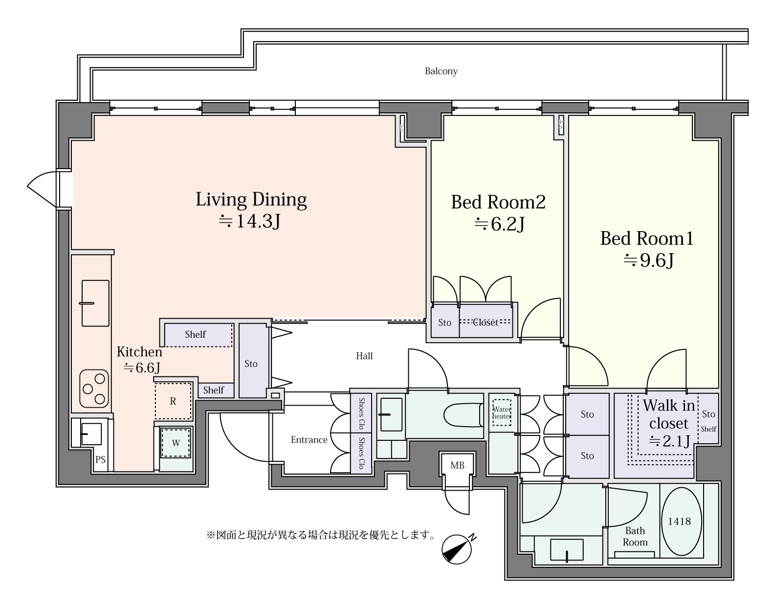 【専有面積92.22㎡、2LDK+WICの間取り】