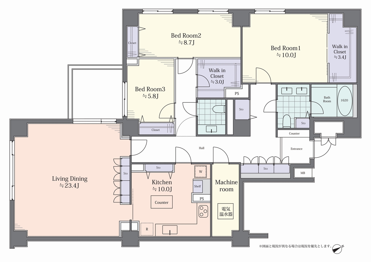 今年7月完了のリノベーション工事で、リビングダイニングに床暖房を新設いたしました。寒い季節でも足元が温かく、快適にお過ごしいただけます。LDKのパブリックスペースと、プライベートスペースである3つの居室は離れた間取りとなっております。