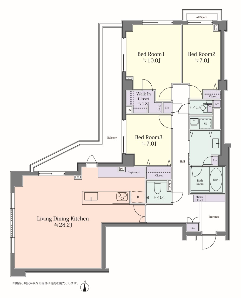120㎡超の広さを存分に活かし、しっかりと3LDKの間取りを確保しながらもLDKは約28帖とゆとりある広さを実現。大型のオープンキッチンは作業スペースを広くとっており、大人二人がストレスなくすれ違えるほどの余裕を確保し、新たに備え付けた戸棚の収納力も申し分ございません。また本住戸は角部屋に位置するため、各居室には気持ちが良いほど陽の光が入り、L型の奥行きあるバルコニーは部屋全体に開放感をプラスします。他にも、床は段差のないフルフラット仕様、新築当時の重厚感ある各居室の扉は敢えて既存利用をし、高級感ある造りを際立たせるなど、是非現地にてご体感いただきたいお勧めのポイントが多数ございます。