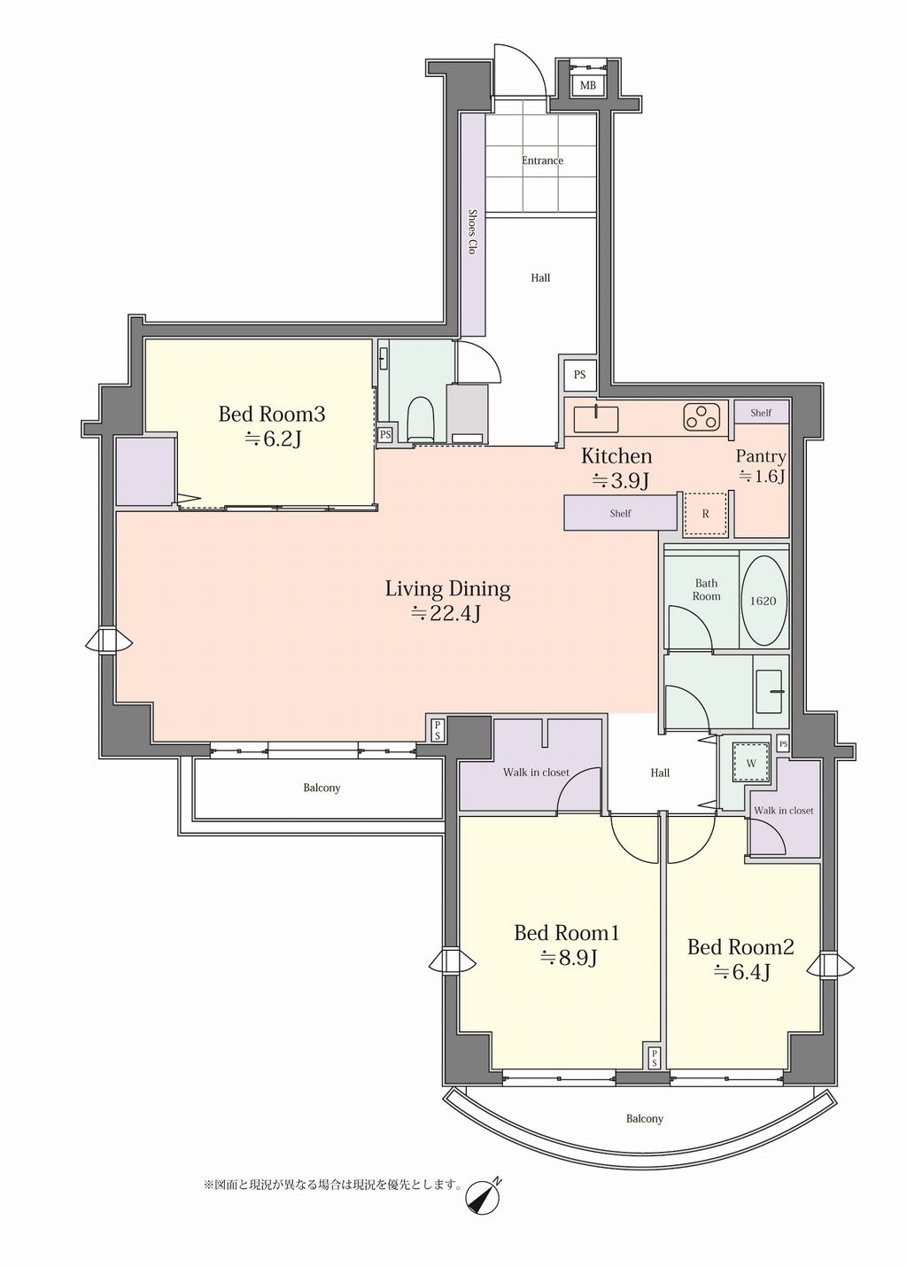 リビングと居室はそれぞれバルコニーに面しており、さらに敷地内の緑にも囲まれ、プライベートテラスのように楽しめます。116㎡を超える広さと住戸条件の良さを最大限に生かしています。キッチンは日々の家事の効率性だけでなく、来客時のおもてなしにも配慮したカウンターを備え、さらにリビングとの一体感も感じられる空間となっております。間取りは3LDKで、リビング横の居室はテレワークに最適な書斎や個室としてもお使いいただけます。シンプルで落ち着いた内装デザインと、開放的な住空間はゆったりとした時間の流れ、心地よさを感じさせてくれます。